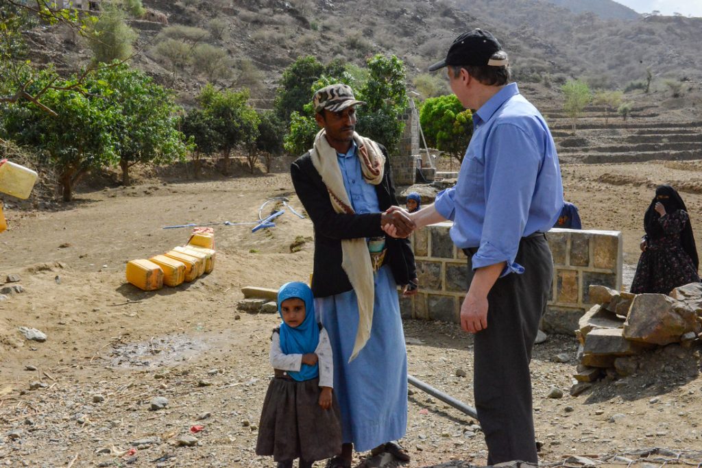 Karl-Otto Zentel an einer von CARE installierten Wasserquelle im Jemen